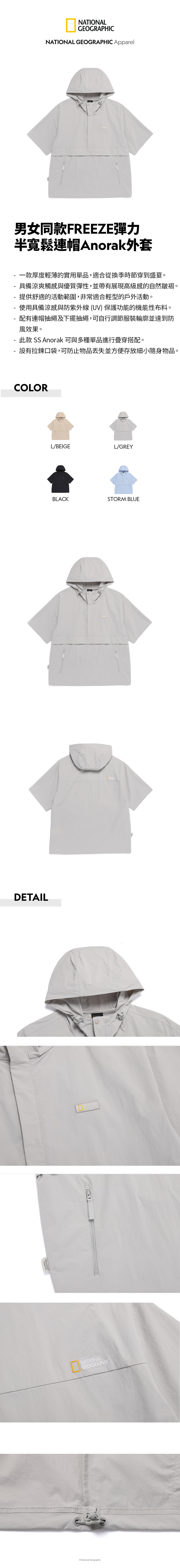 男女同款FREEZE彈力半寬鬆連帽Anorak外套
