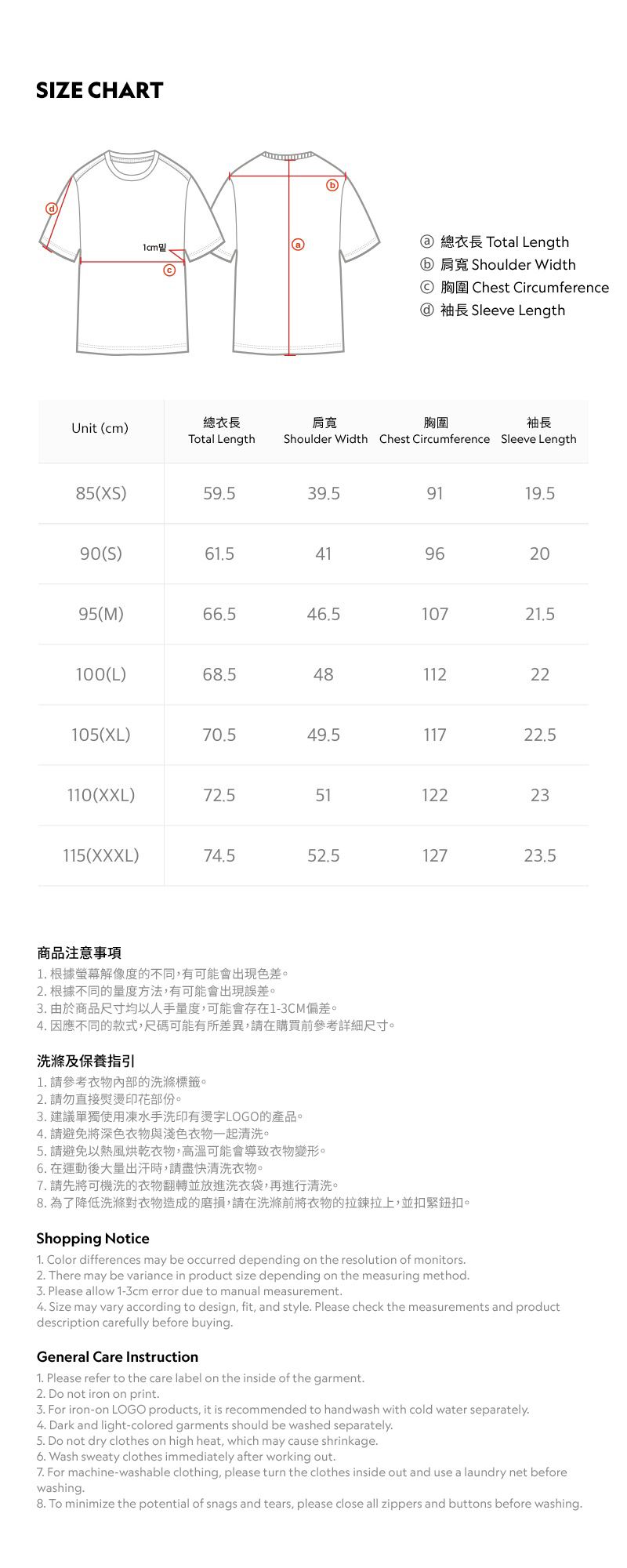 - 前胸有細LOGO章,背面有大LOGO配以當季圖案