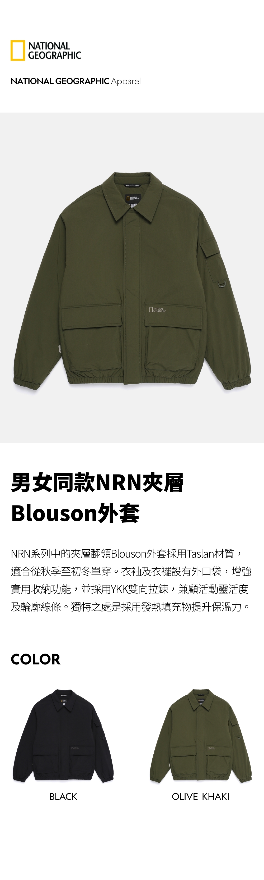 NRN系列中的夾層翻領Blouson外套採用Taslan材質,適合從秋季至初冬單穿。