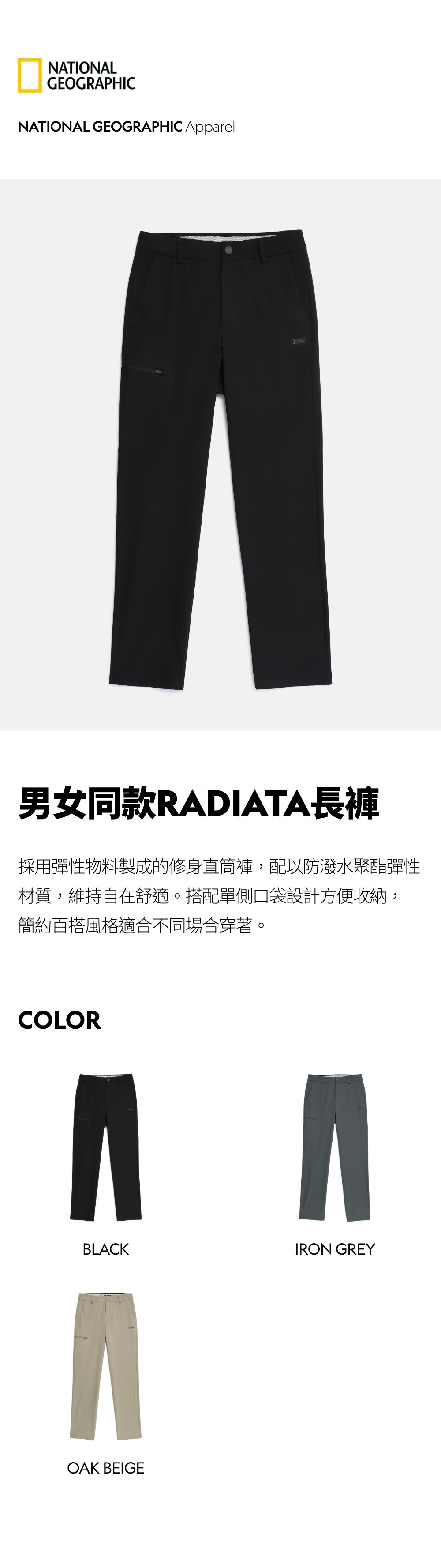 - 採用彈性物料製成的修身直筒褲,配以防潑水聚酯彈性材質,維持自在舒適。搭配單側口袋設計方便收納,簡約百搭風格適合不同場合穿著。