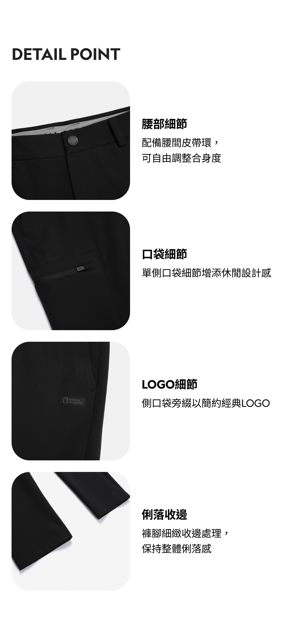 -俐落收邊:褲腳細緻收邊處理,保持整體俐落感