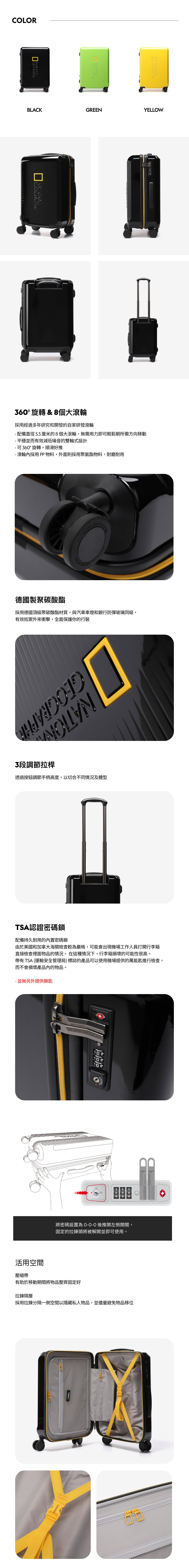 - 採用獲美國運輸安全局(TSA)認證的安全鎖,如海關人員需要檢查行李箱,無需破壞即可用專用鎖匙開鎖