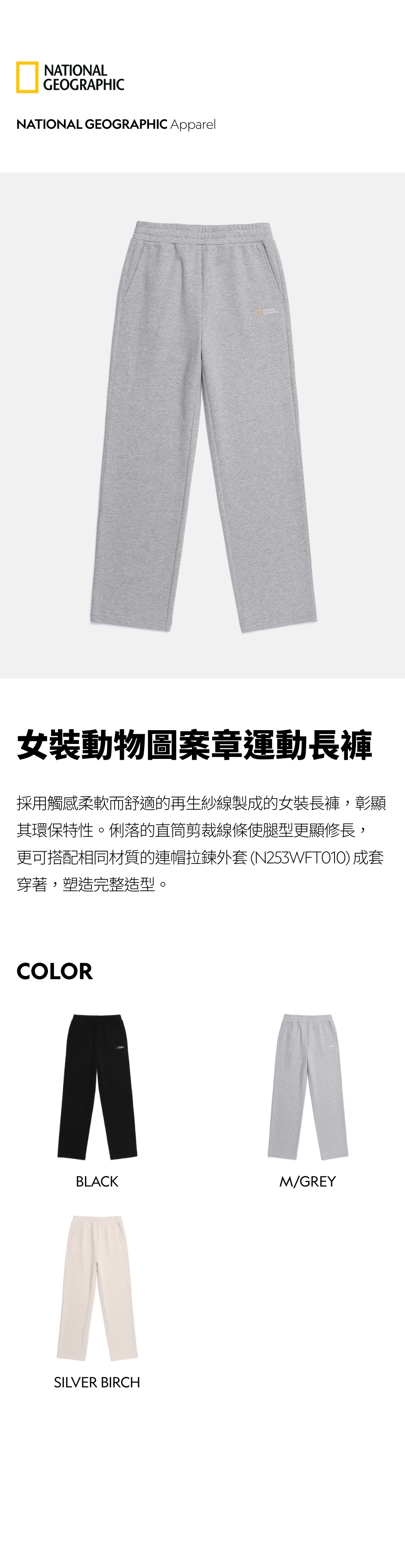 - 採用觸感柔軟而舒適的再生紗線製成的女裝長褲,彰顯其環保特性。俐落的直筒剪裁線條使腿型更顯修長,更可搭配相同材質的連帽拉鍊外套 (N253WFT010) 成套穿著,塑造完整造型。