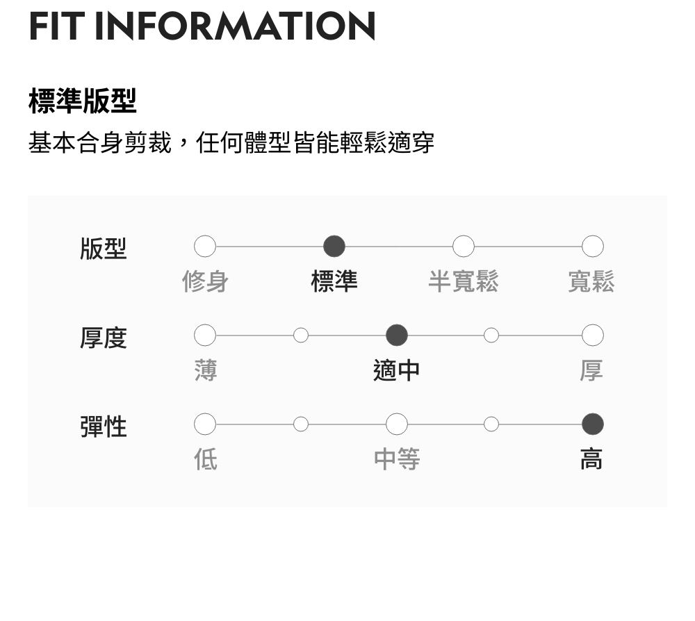 -標準版型:基本合身剪裁,任何體型皆能輕鬆適穿