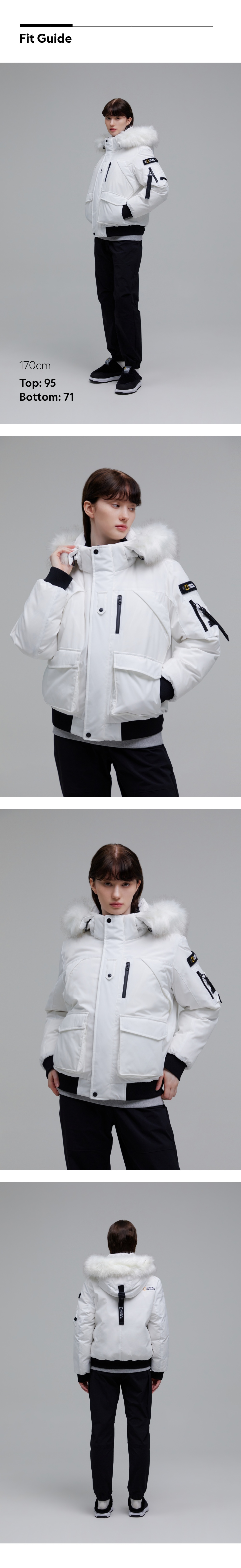 - 著重實用性的多功能設計,有切線縫合細節、手袖口袋、內袋,及飾有人造毛皮的可拆式連帽